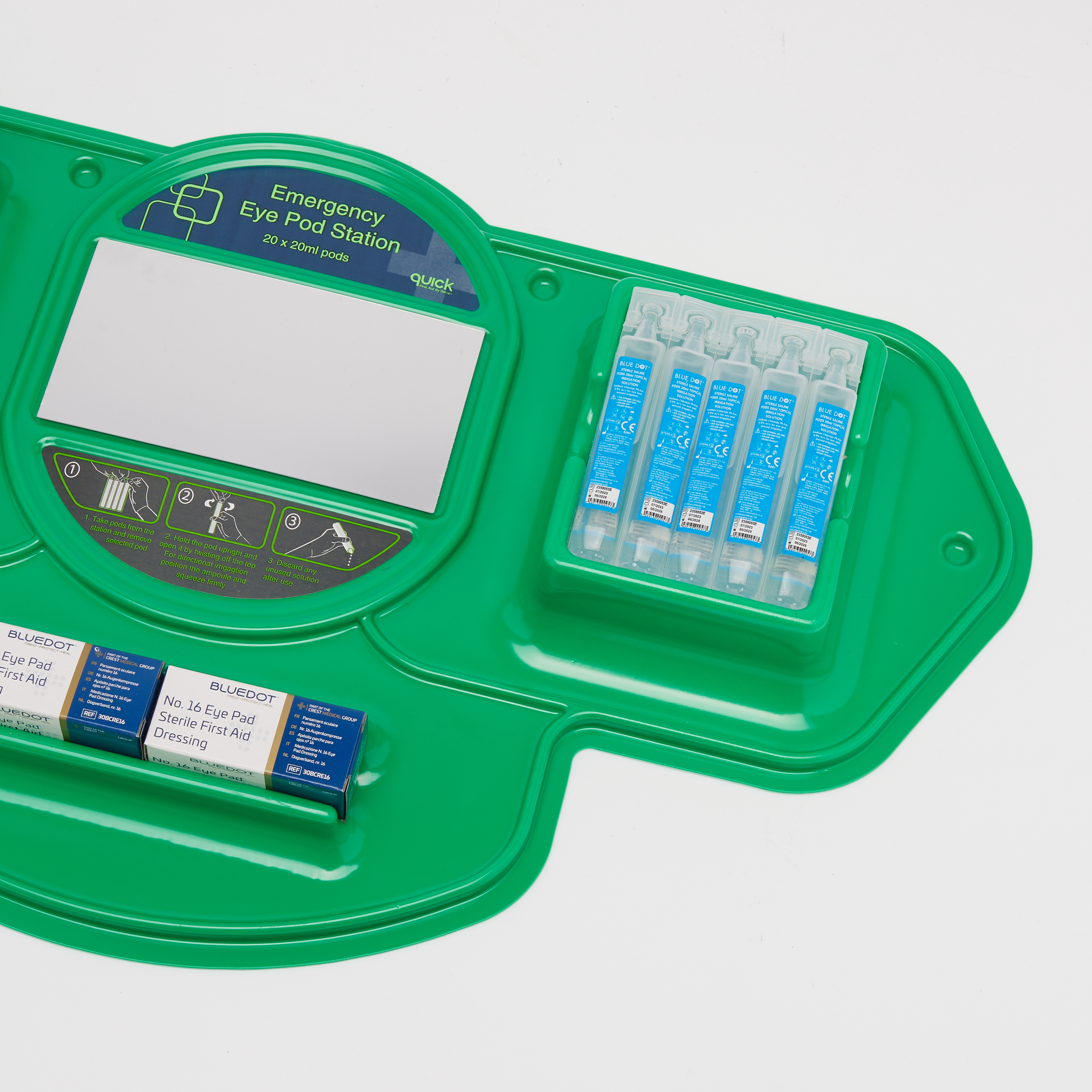 Blue Dot Quick Check Eye Wash Station – 10 x 20ml + 2 x No.16 – 1 x Each